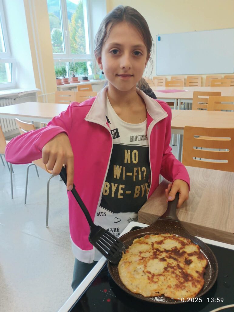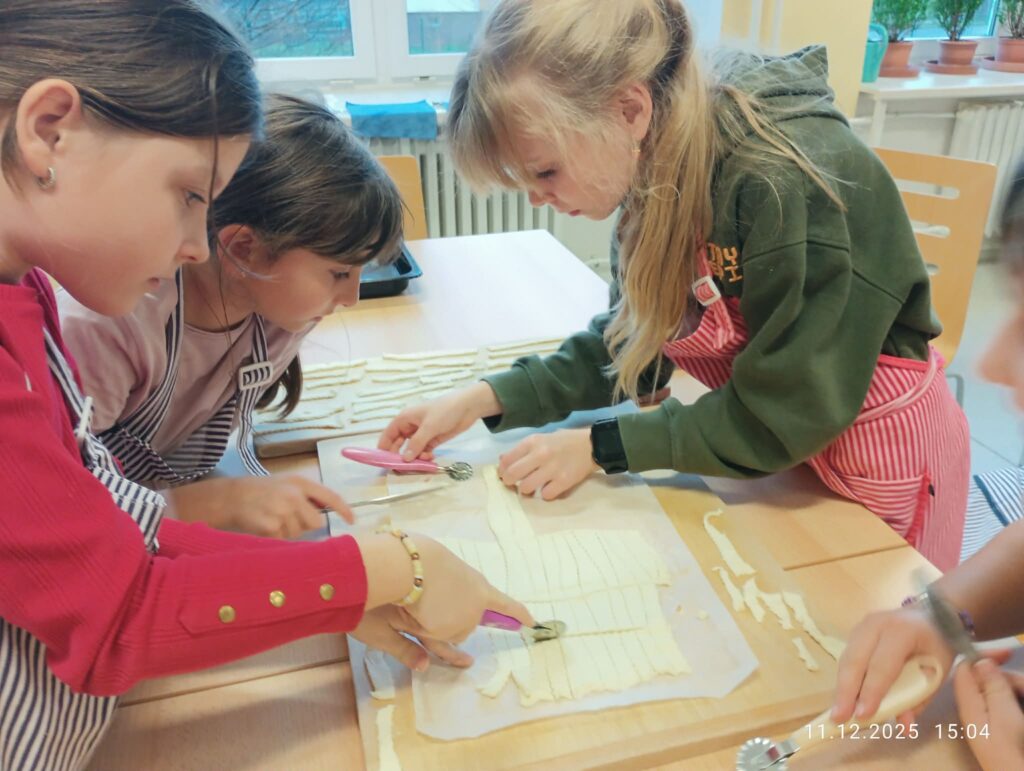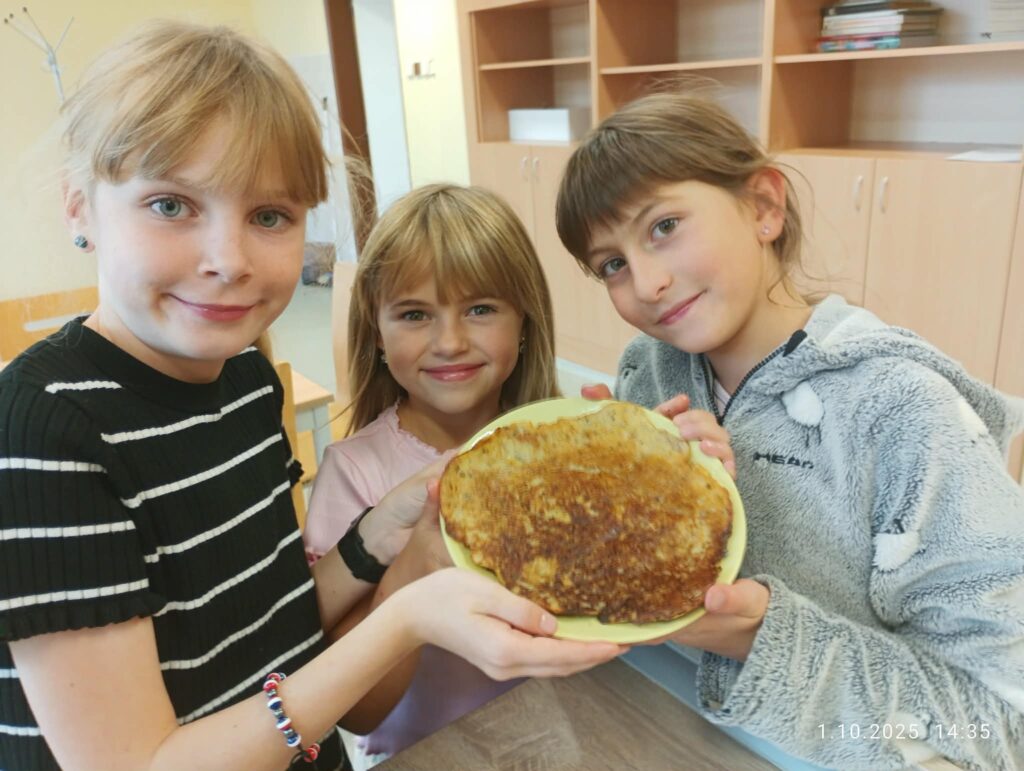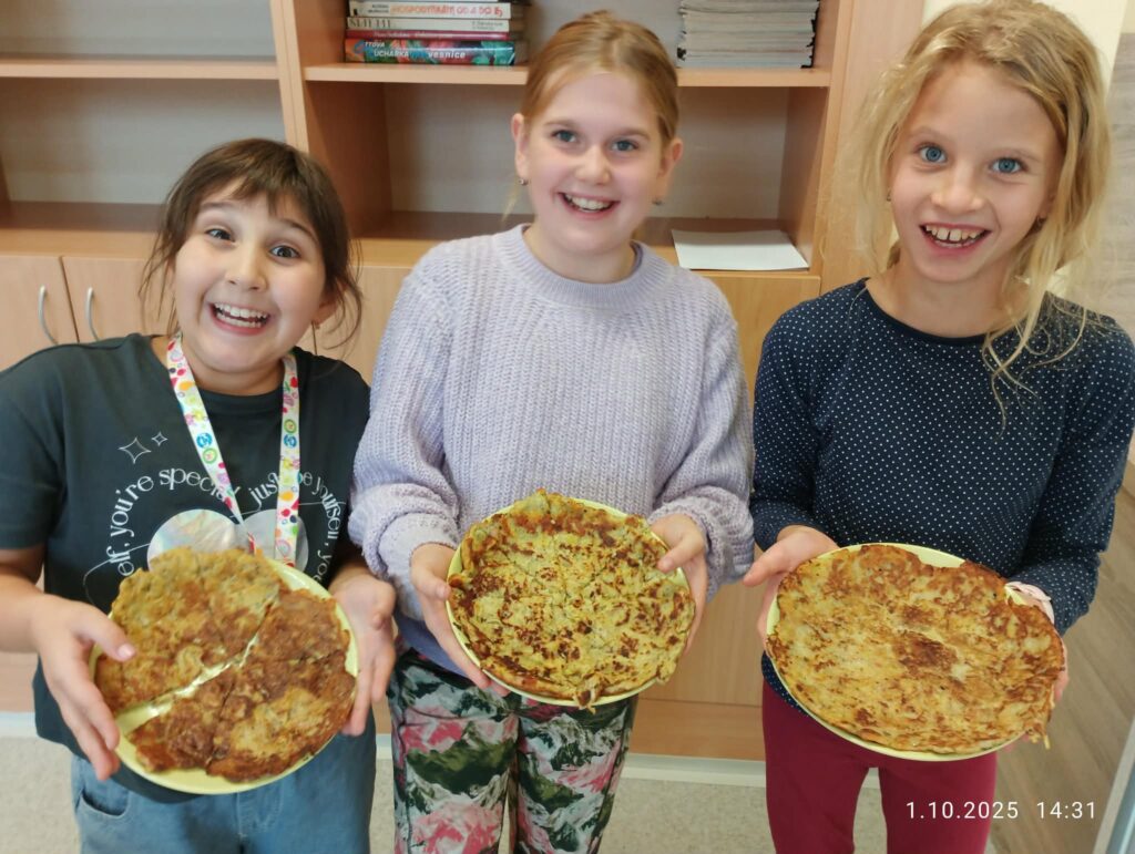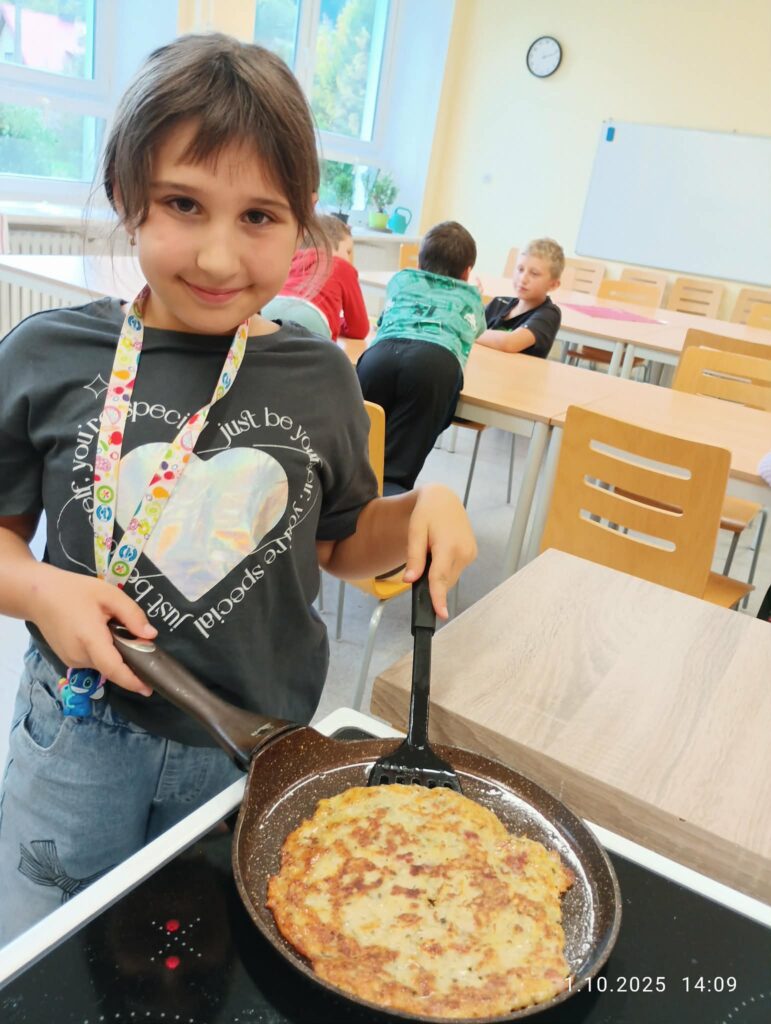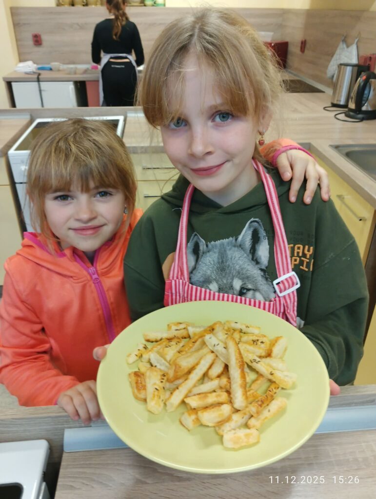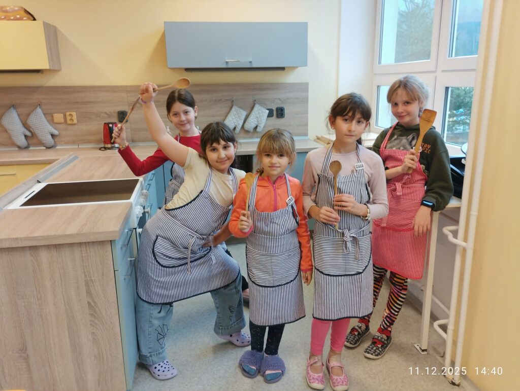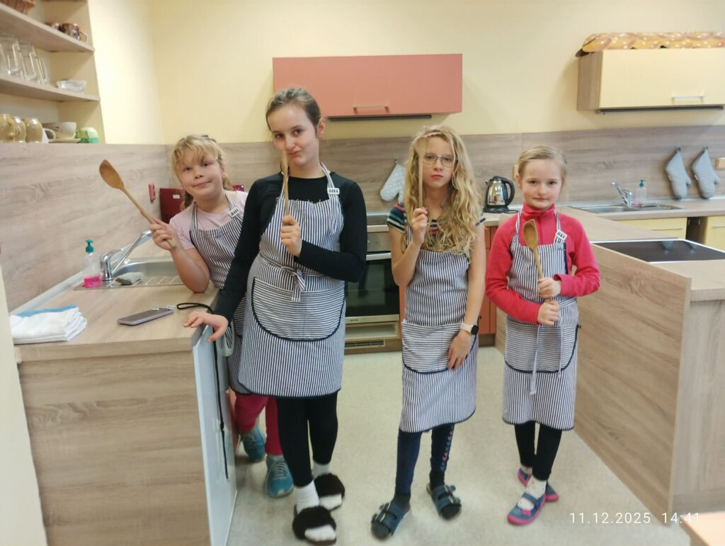 Co už v kuchyňce připravily? Ze sladkých pokrmů: štrůdl, perníčky, zdravé ovocné poháry. Ze slaných pokrmů: slané tyčinky, bramborové placky, špízy, zeleninový salát. Každé jídlo je jejich malým uměleckým dílem. Možná se mezi dětmi skrývá budoucí známý šéfkuchař! Vaření není jen o jídle, ale také o kreativitě, spolupráci a radosti z tvorby. Malí kuchaři dokazují, že i školní cvičná kuchyně může být místem zázraků a skvělých dobrodružství.