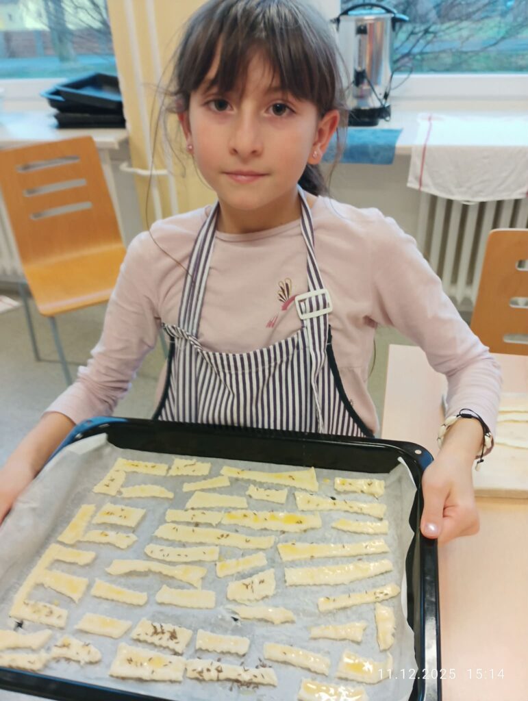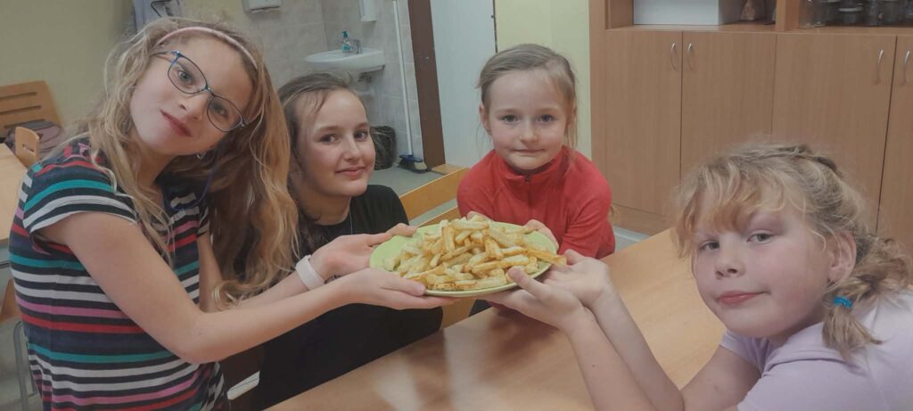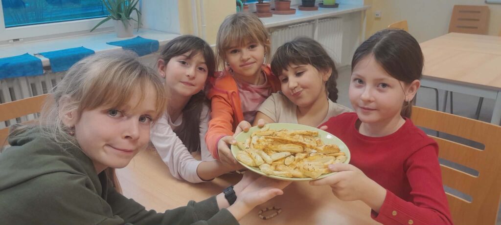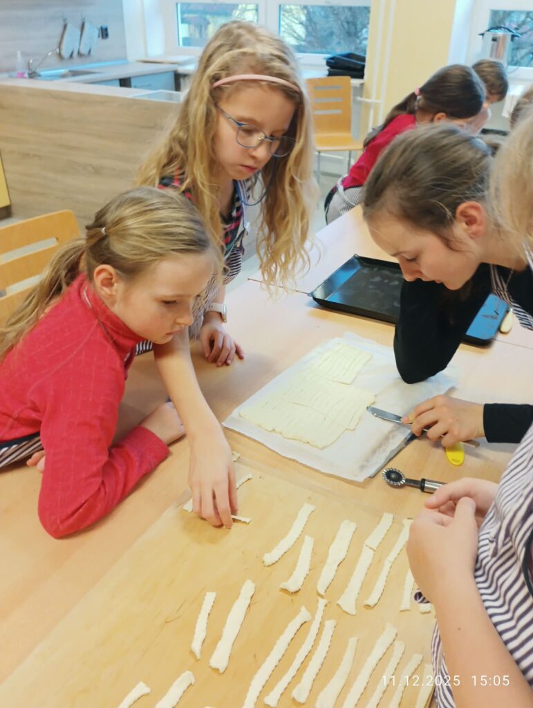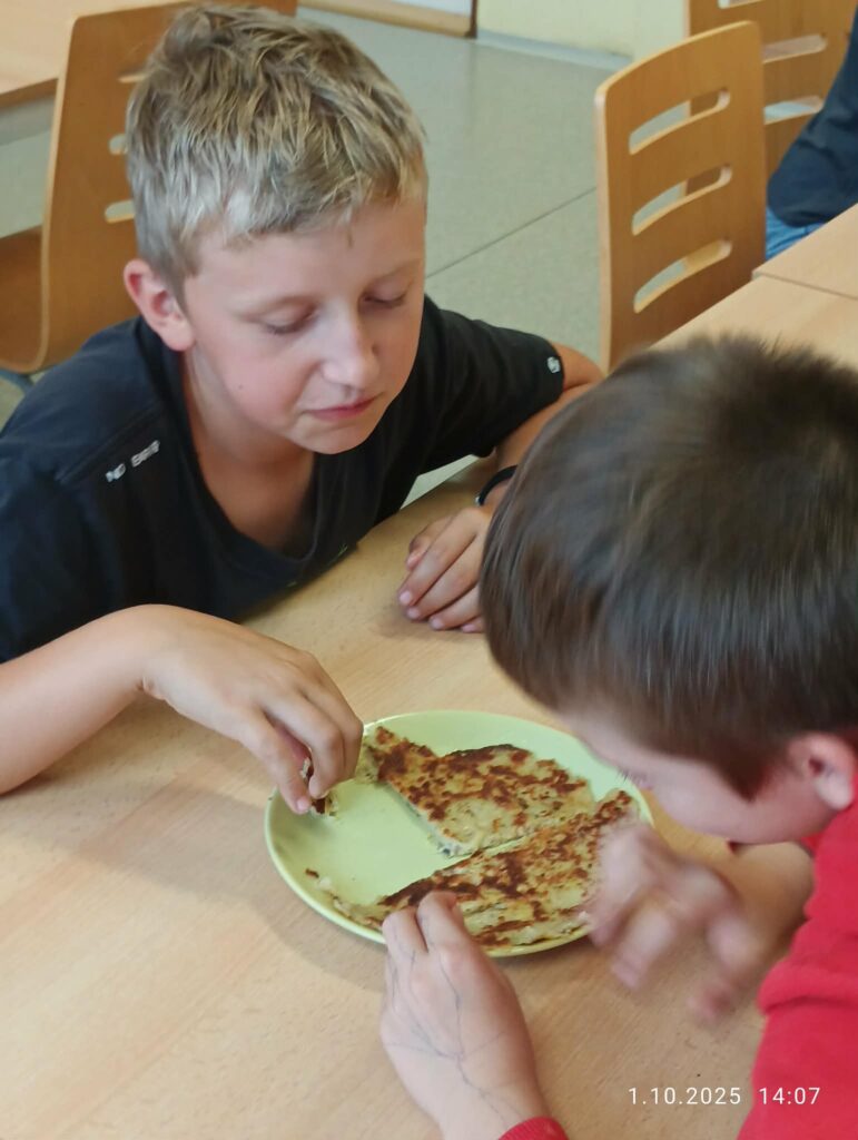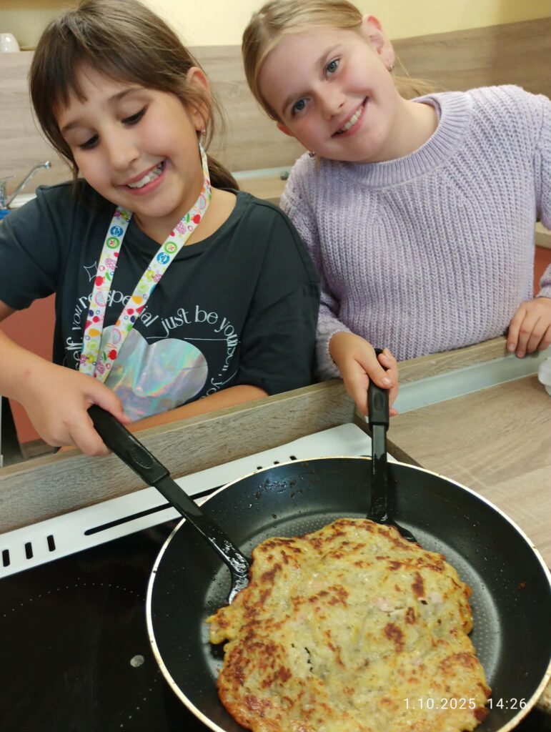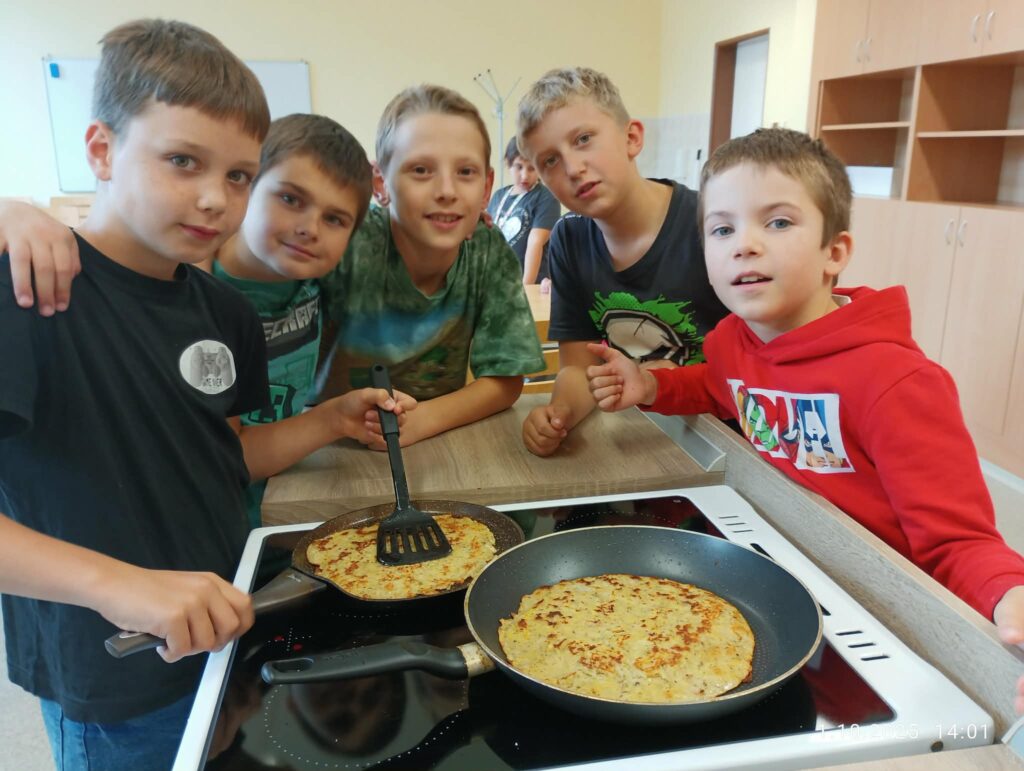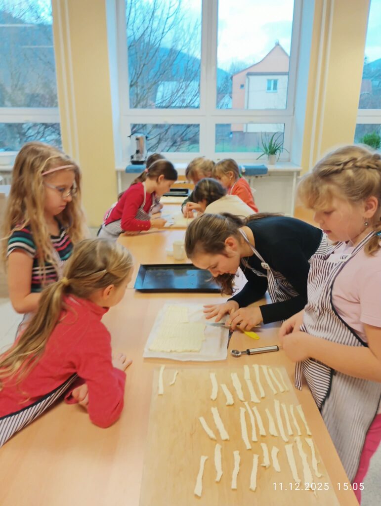 Co už v kuchyňce připravily? Ze sladkých pokrmů: štrůdl, perníčky, zdravé ovocné poháry. Ze slaných pokrmů: slané tyčinky, bramborové placky, špízy, zeleninový salát. Každé jídlo je jejich malým uměleckým dílem. Možná se mezi dětmi skrývá budoucí známý šéfkuchař! Vaření není jen o jídle, ale také o kreativitě, spolupráci a radosti z tvorby. Malí kuchaři dokazují, že i školní cvičná kuchyně může být místem zázraků a skvělých dobrodružství.