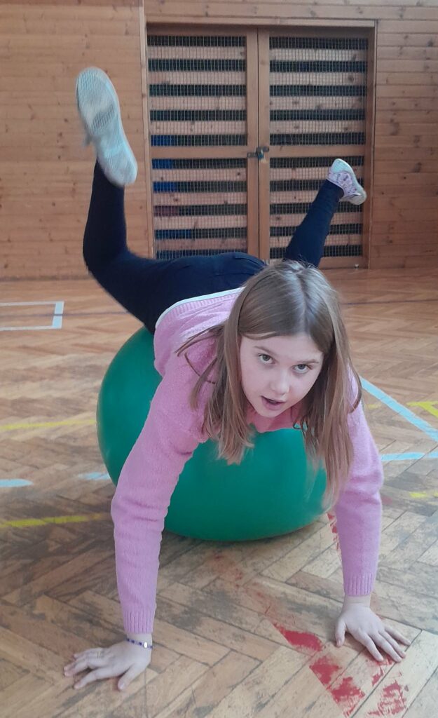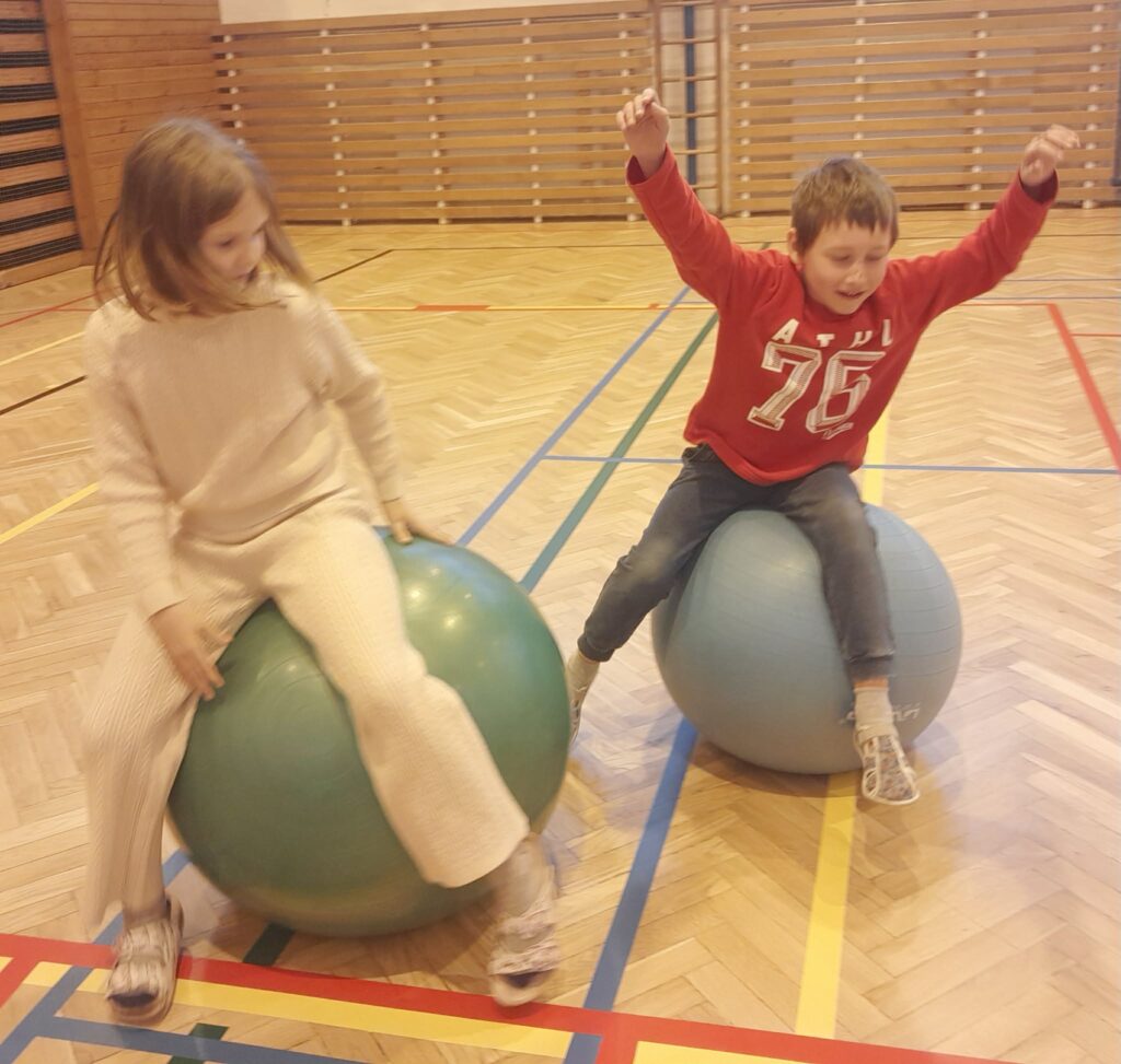Cvičení na míčích pomáhá dětem se správným držením těla a rozvíjí jejich motoriku. Nejednou došly k závěru, že „míč má vlastní hlavu“, protože když chtějí jet vlevo, míč je veze jinam.“ Všechny si zaslouží velkou pochvalu za sportovní nadšení a bojovnost!
