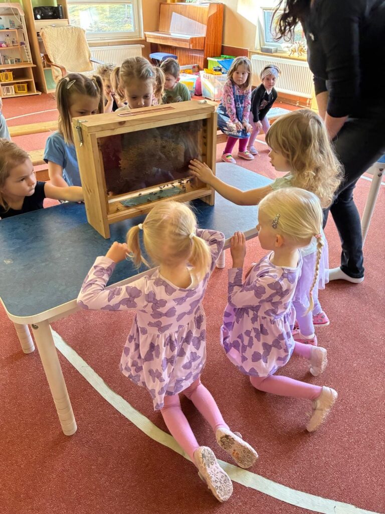 Do naší mateřské školy zavítal vzdělávací program o včelkách, který dětem přiblížil důležitou roli včel v přírodě a práci včelaře. Zábavnou formou ukázal, proč je důležité chránit životní prostředí. Poutavě představil život včely, fungování úlu, život včelí královny, proces výroby medu.