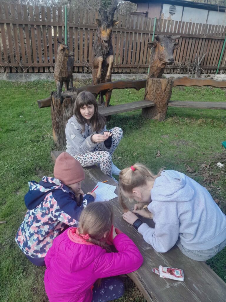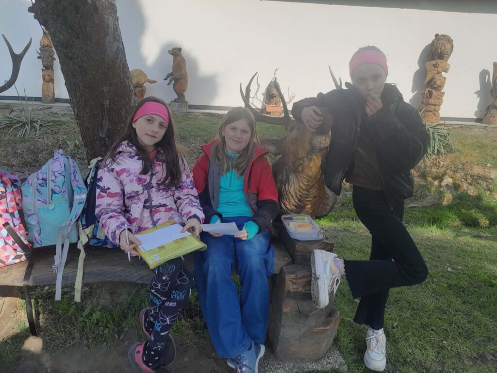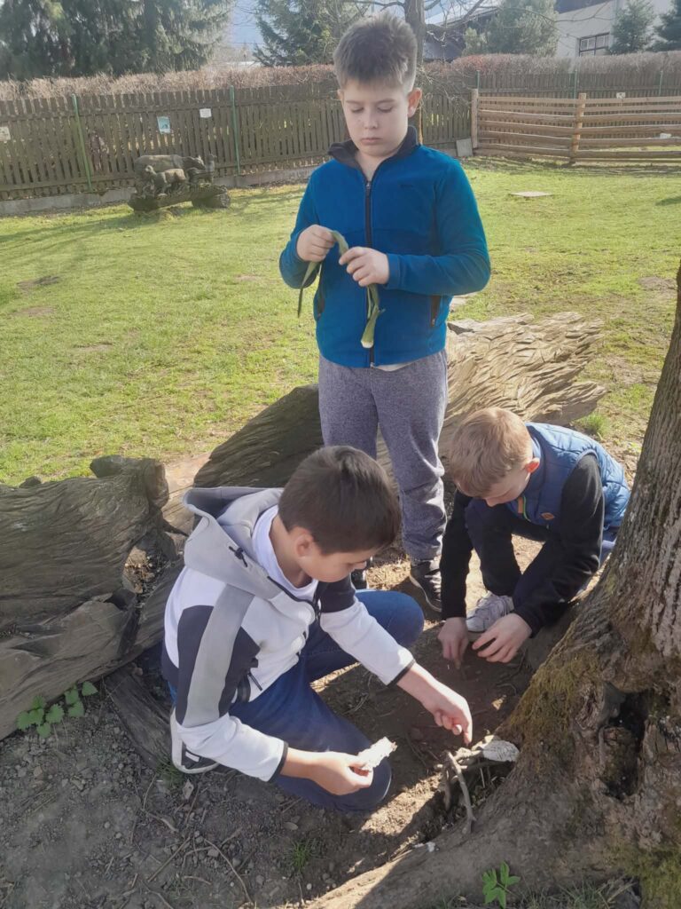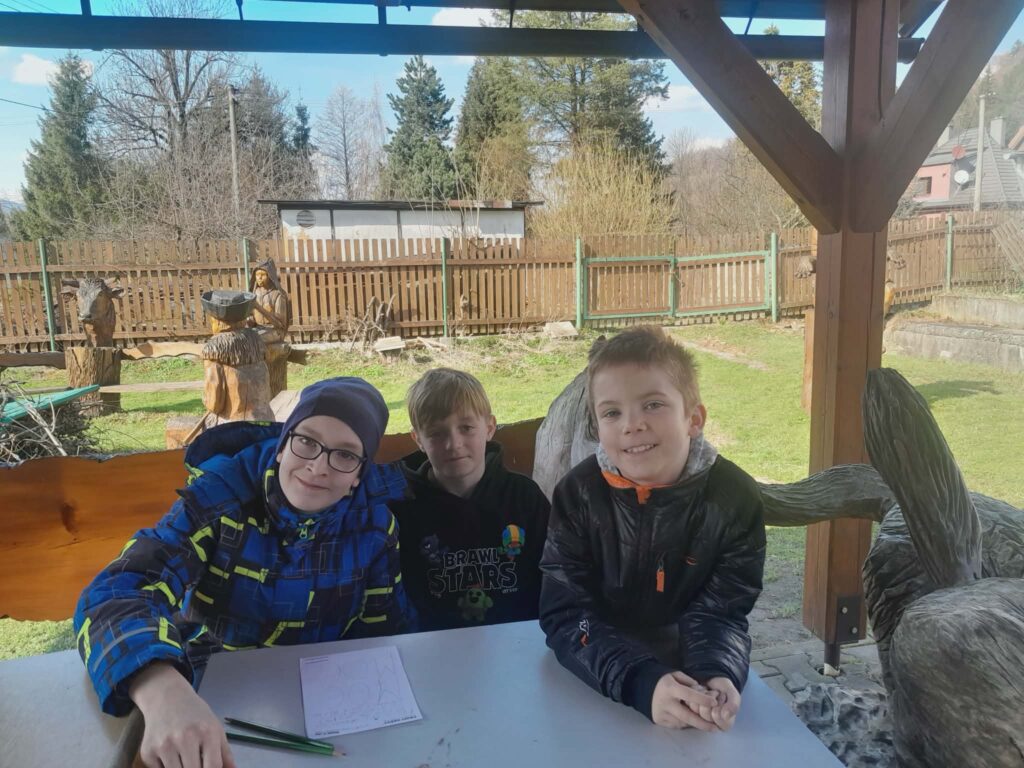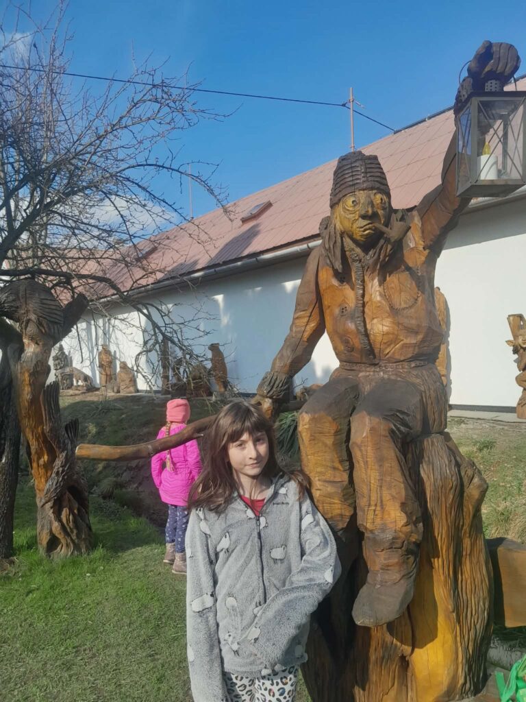 Žáci ze 3. a 1. oddělení naší školní družiny využili 24. března krásného slunečného počasí a vyrazili na procházku do Ráje dřevěných soch v Ostravici. Hlavním cílem byla návštěva místního stáda koz, které si mohli pohladit a sami nakrmit, protože majitel umělecký řezbář pan Vančura do zahrady umístil automat se zrním. Kozičky se jmenují po našich beskydských vrcholech –Skalka, Smrk a Lysá hora. Největší radost dětem udělalo nové kůzlátko, které ve stádě přibylo letos na jaře. Pokřtily ho jménem Ondřejník.