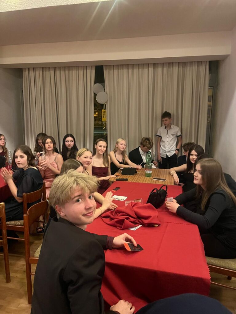 Žáci 8. ročníku se zúčastnili projektu „Smím prosit?“, který propojuje praktický kurz společenského chování s autentickým plesovým zážitkem. Cílem projektu bylo zábavně a interaktivně představit žákům 2. stupně ZŠ (8. ročník) základy etikety a společenského chování, které mohou využít nejen v školním prostředí, ale i v každodenním životě.