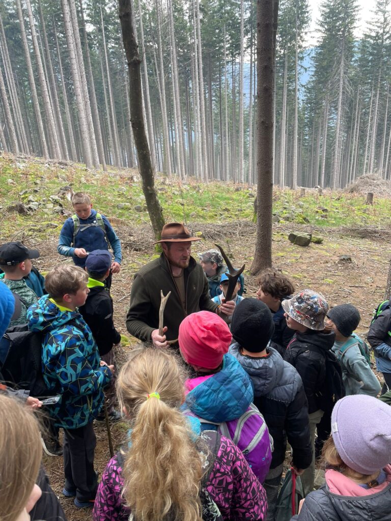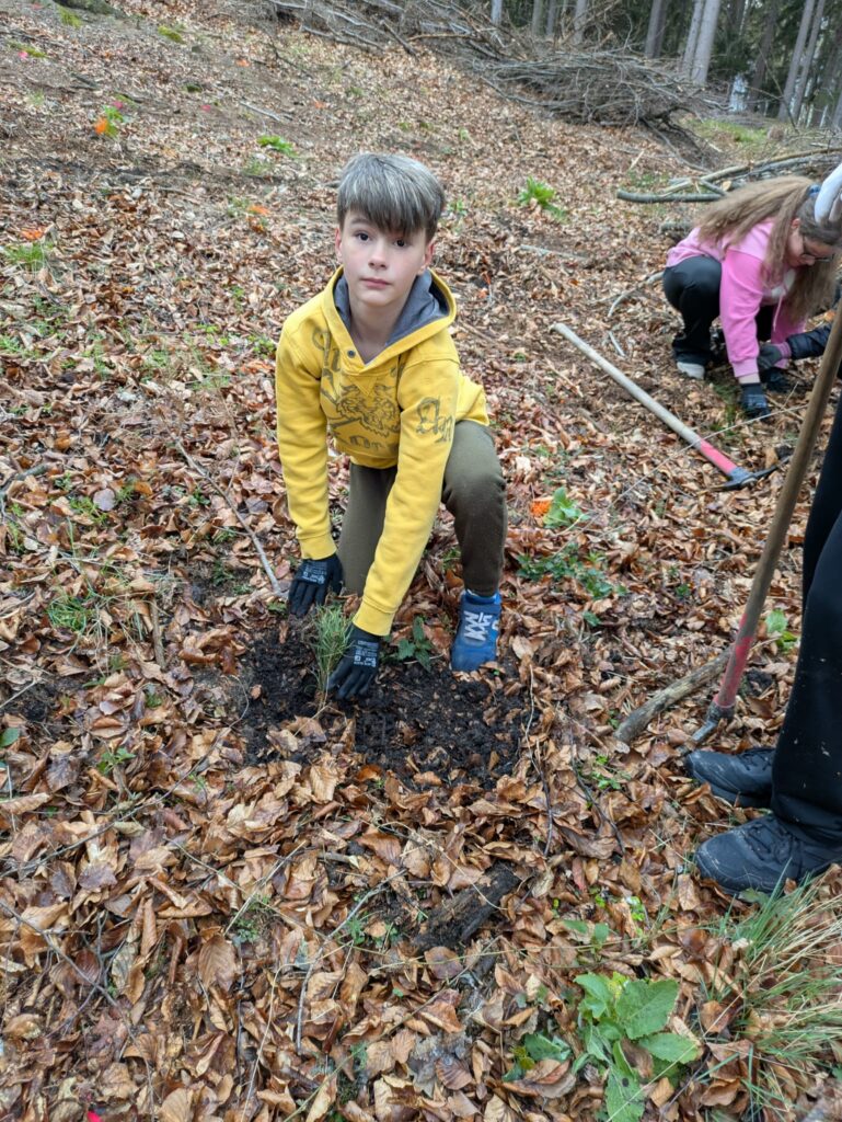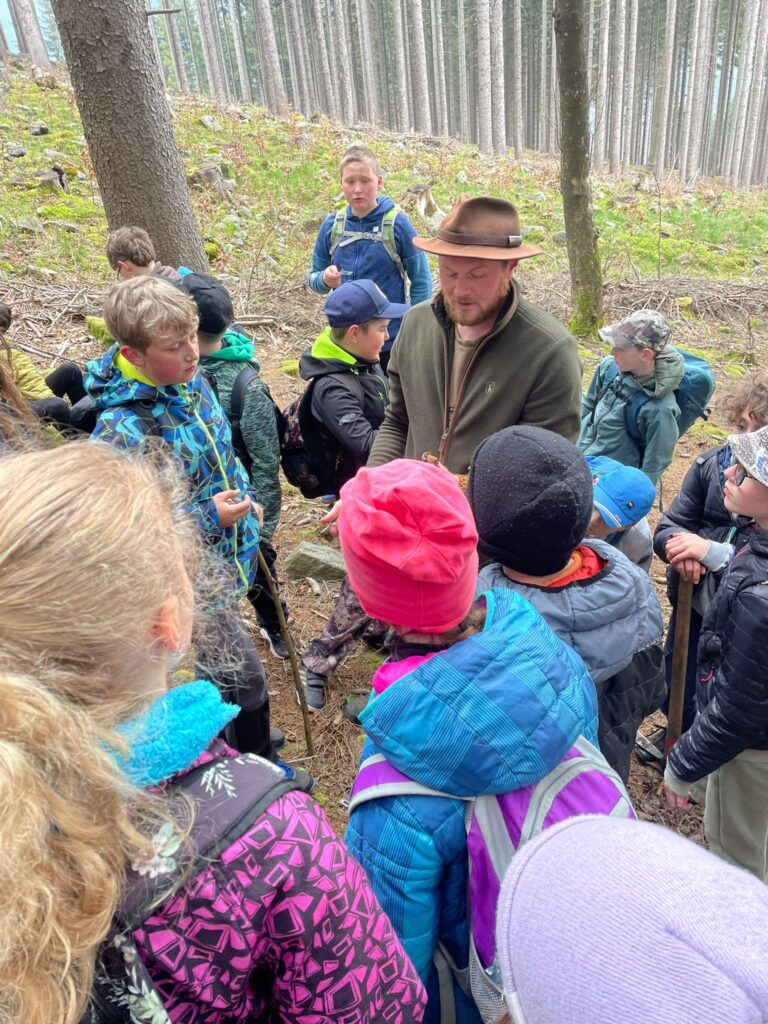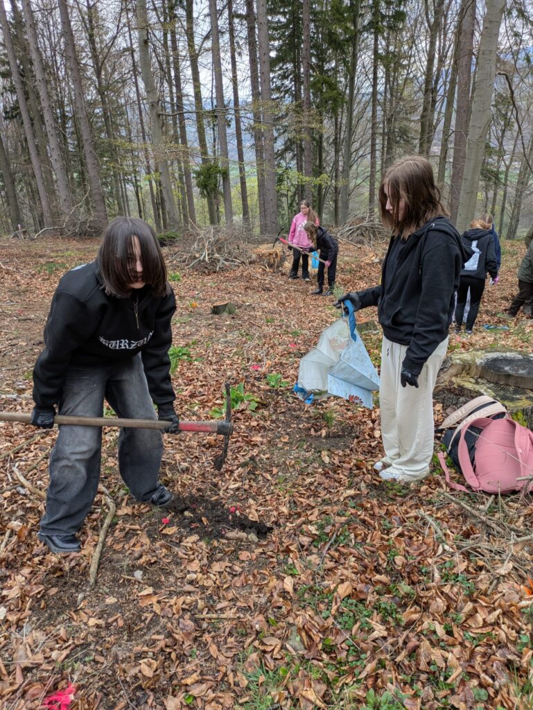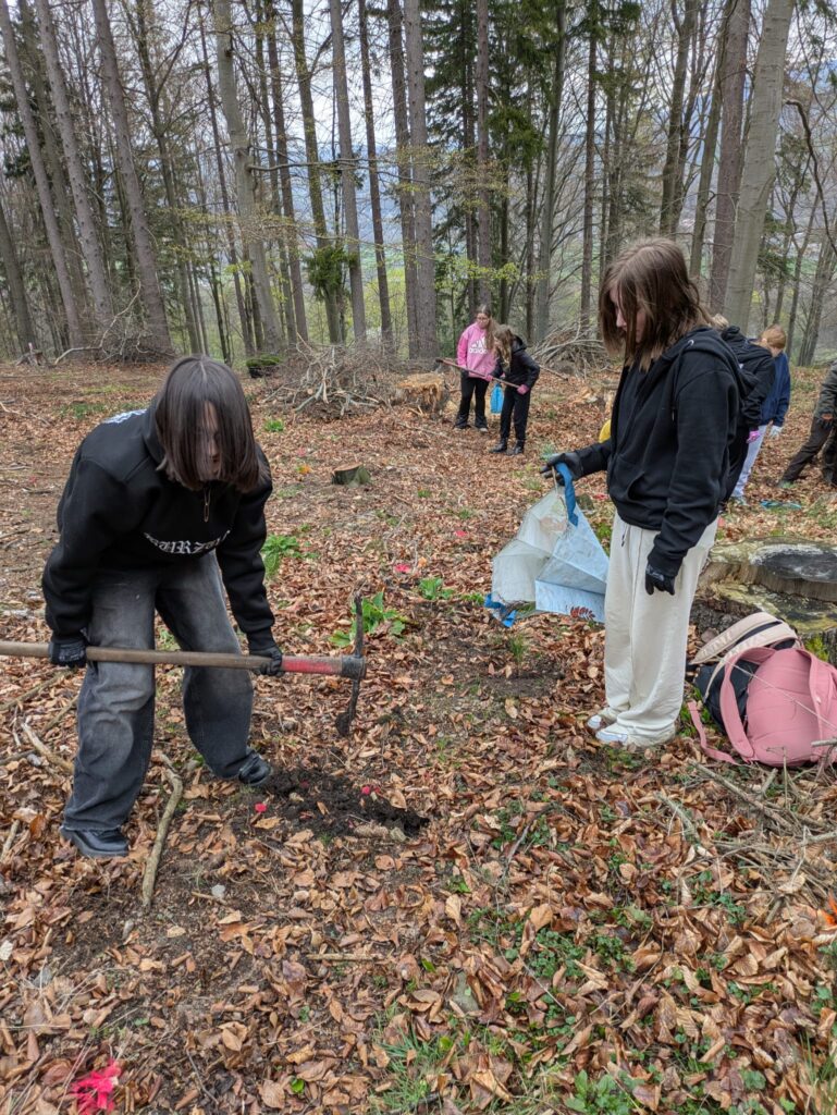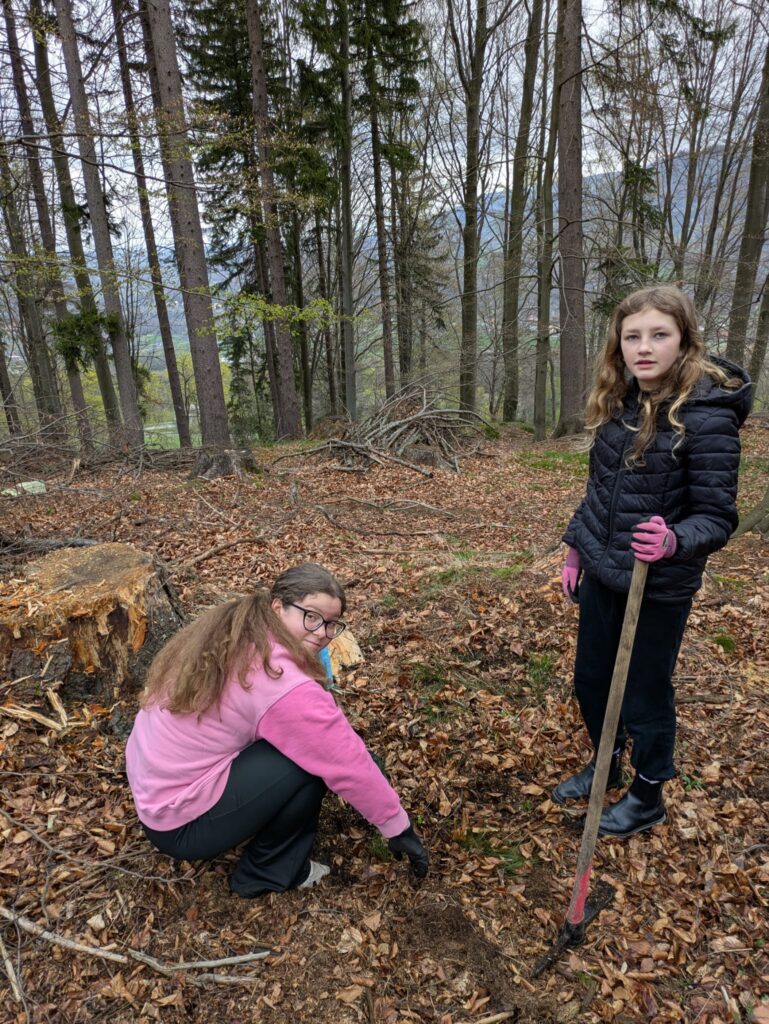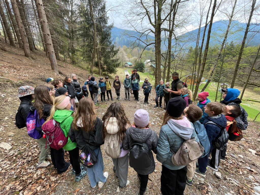Děti z 1. stupně byly rozděleny do třech skupin. Ke dvěma skupinám se přidali šikovní mladí lesníci, kteří si pro žáky připravili velmi zajímavý, zábavný a hlavně poučný program. Společně vyrazili na vycházku do lesa, děti se dozvěděly spoustu informací o celém lesním ekosystému a dokonce vysadily i 4 malé sazeničky.