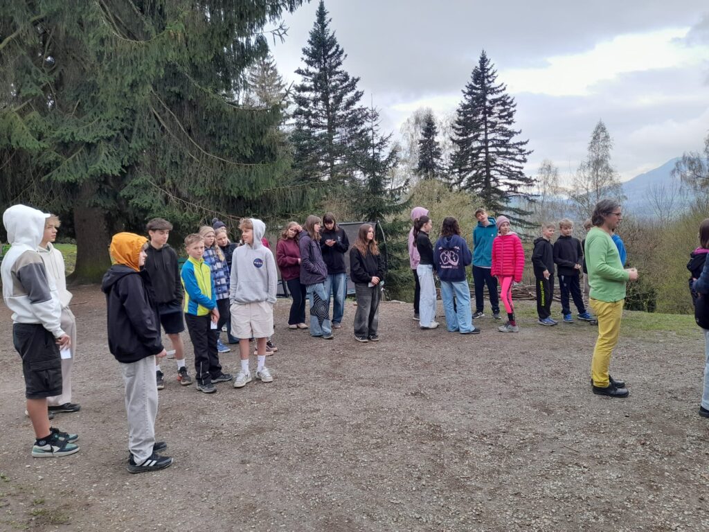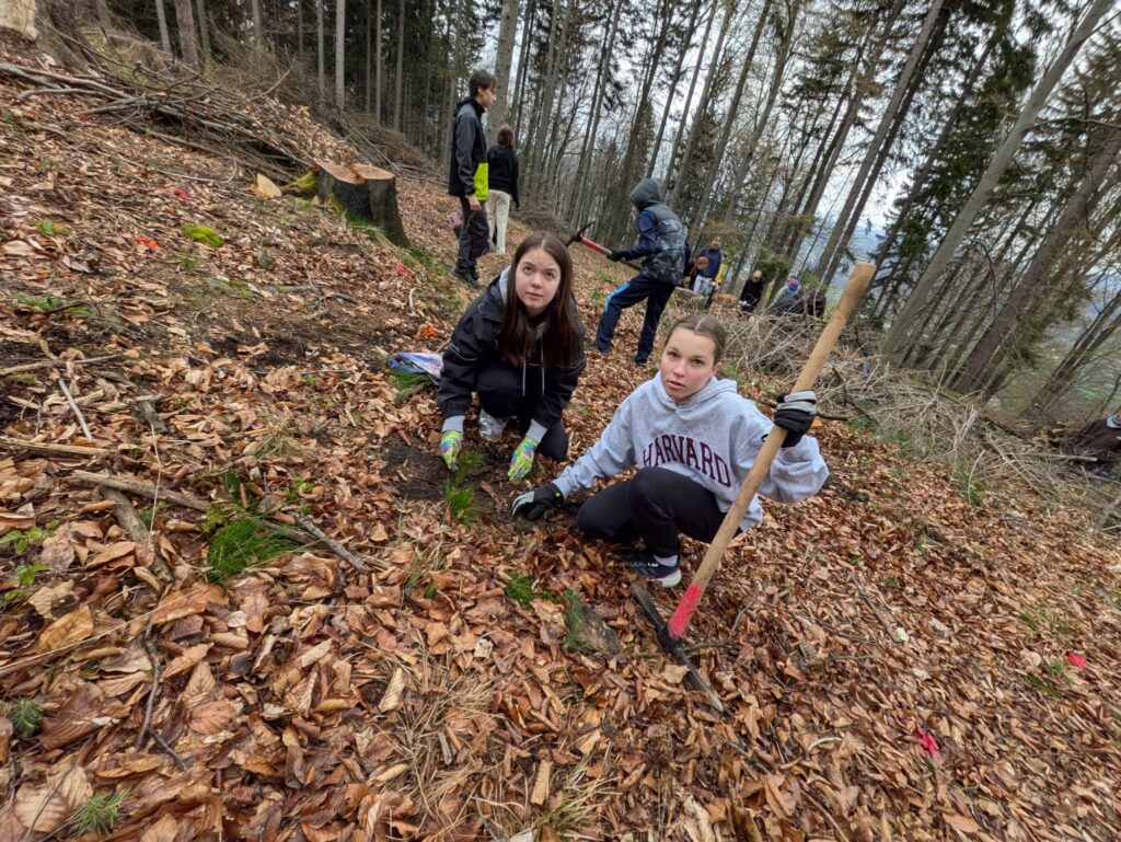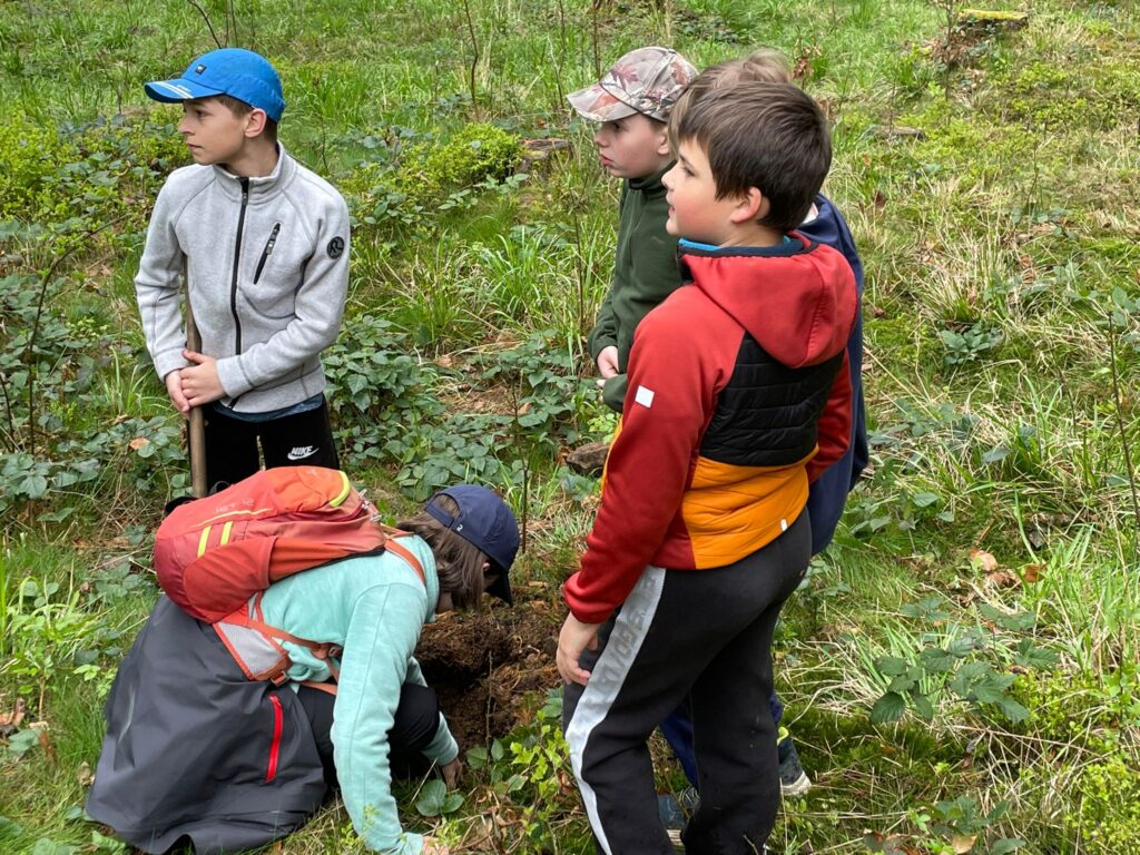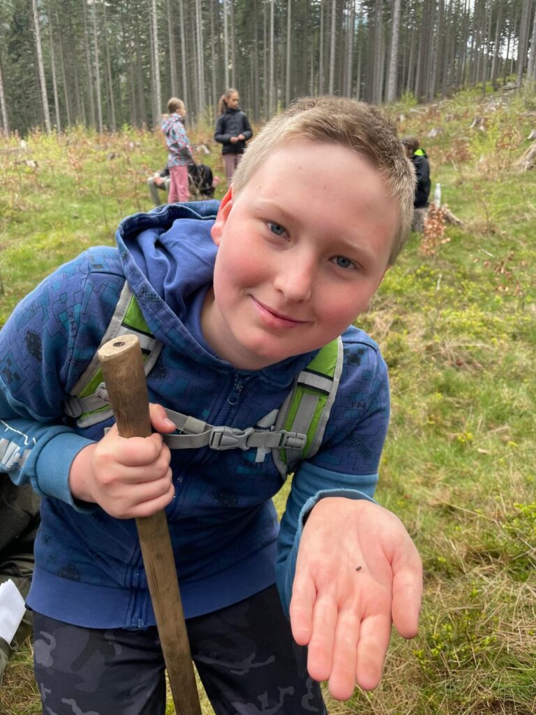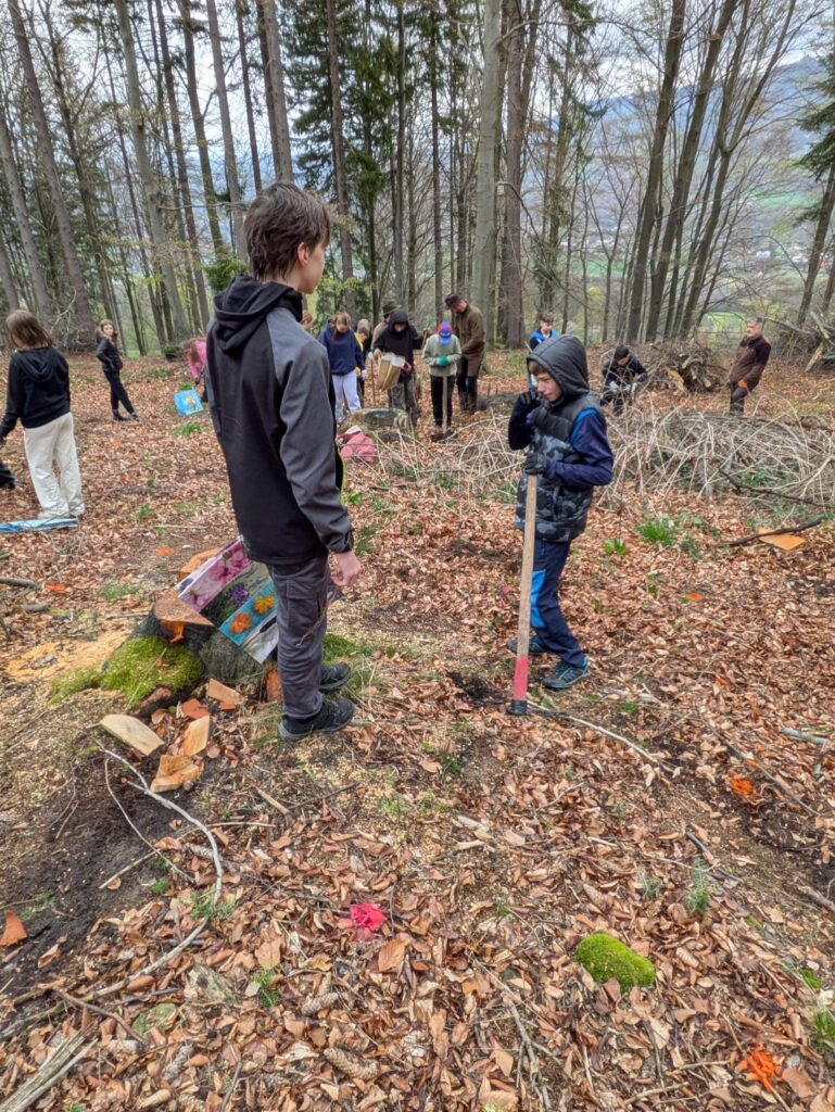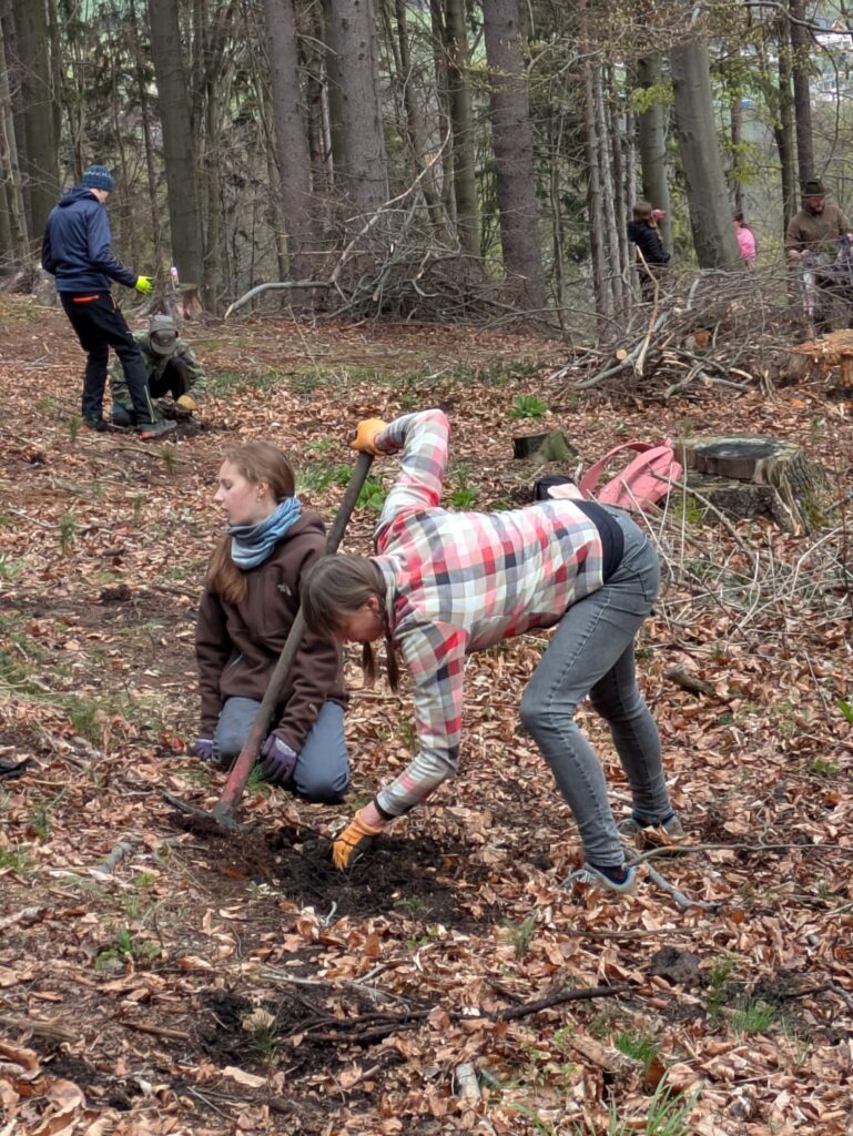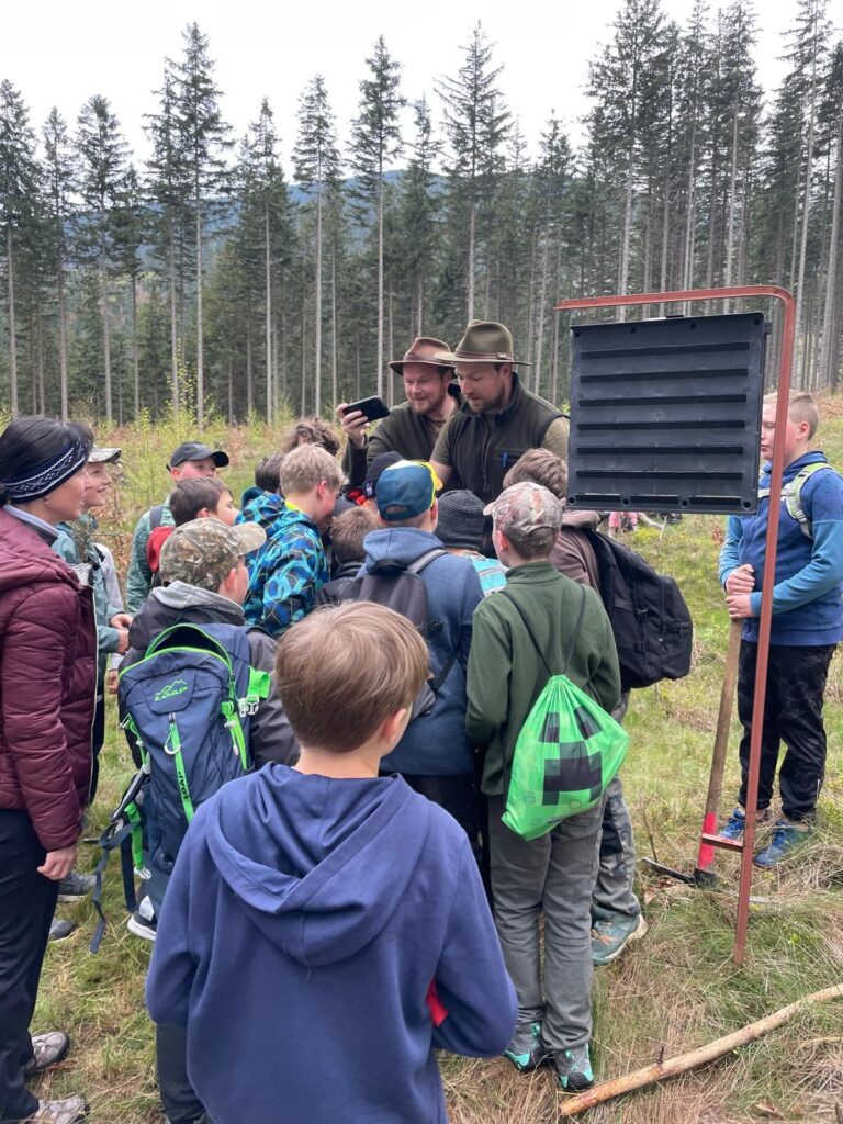 Děti z 1. stupně byly rozděleny do třech skupin. Ke dvěma skupinám se přidali šikovní mladí lesníci, kteří si pro žáky připravili velmi zajímavý, zábavný a hlavně poučný program. Společně vyrazili na vycházku do lesa, děti se dozvěděly spoustu informací o celém lesním ekosystému a dokonce vysadily i 4 malé sazeničky.