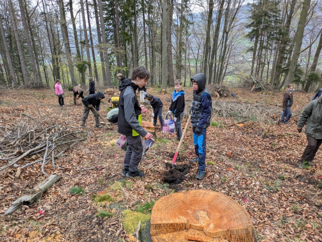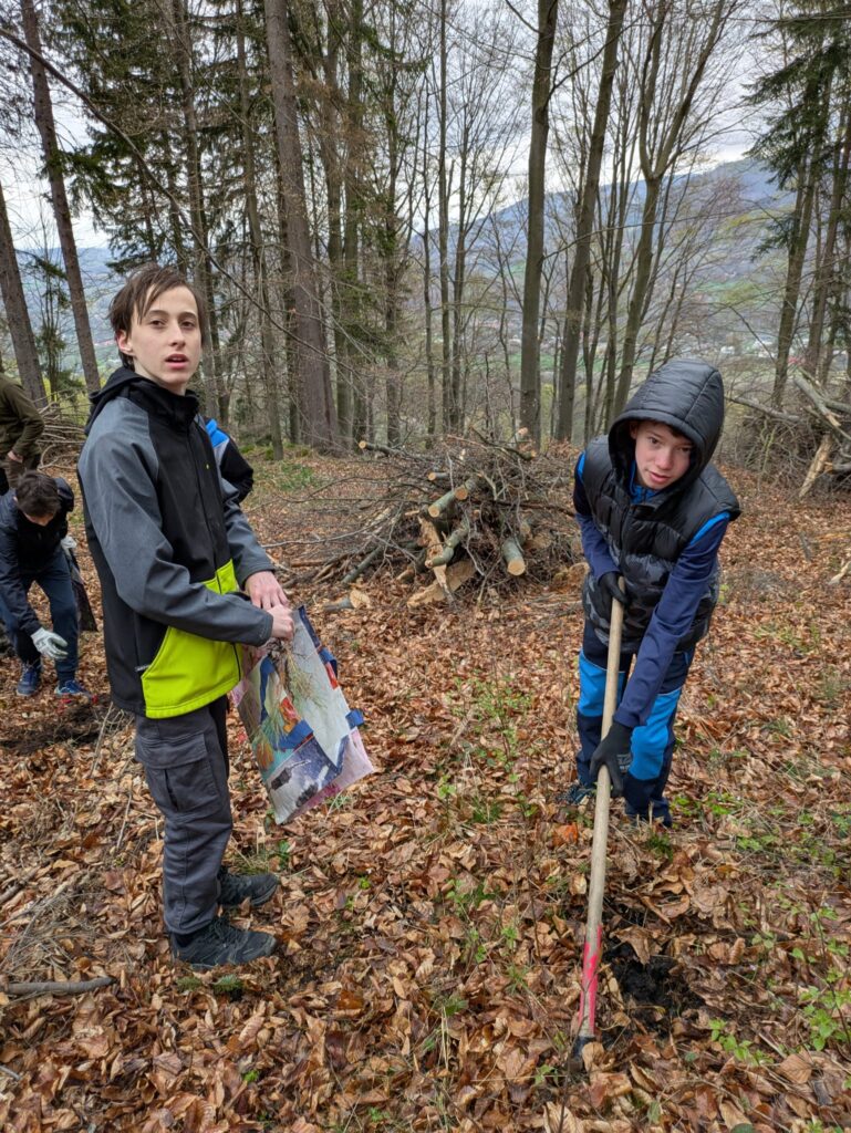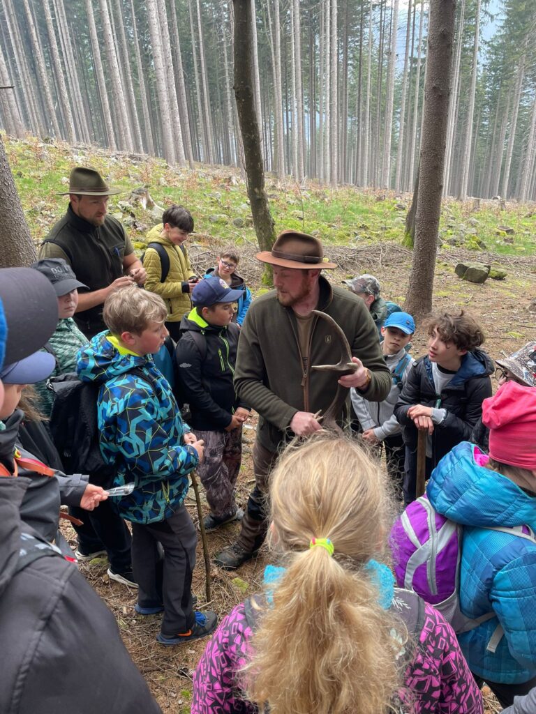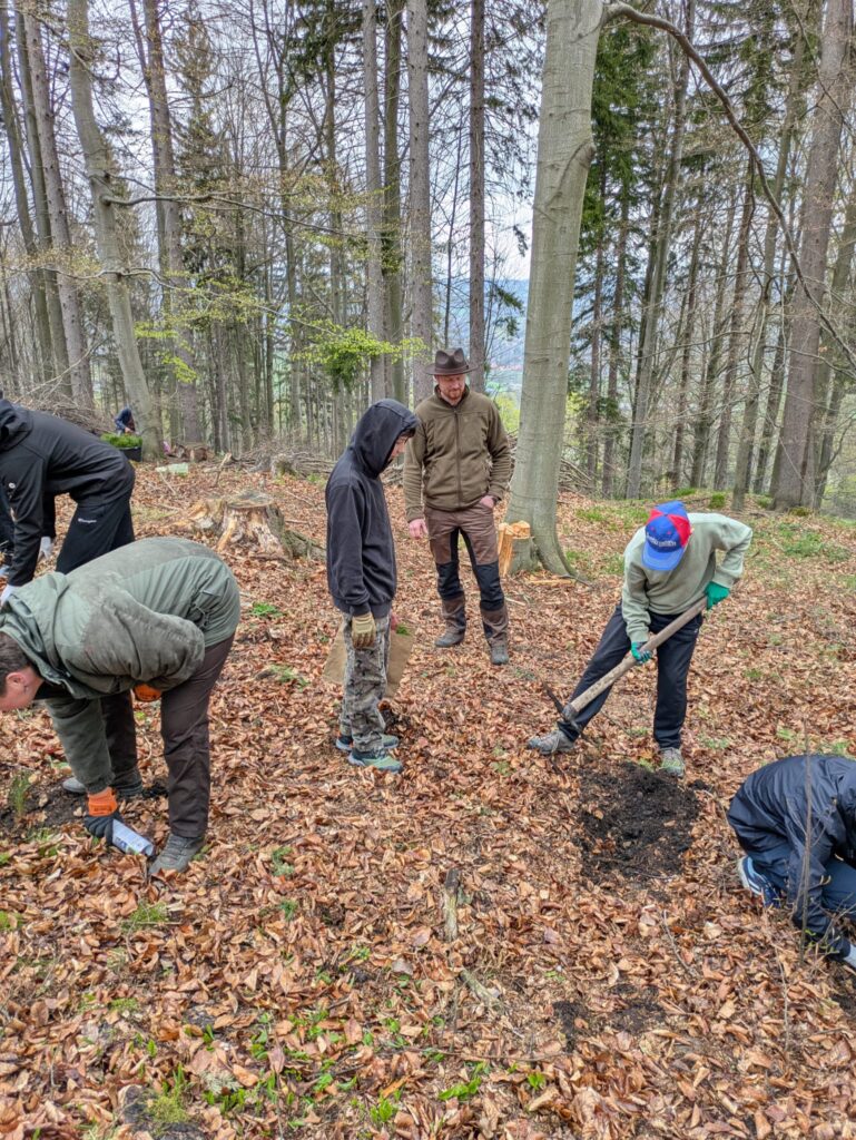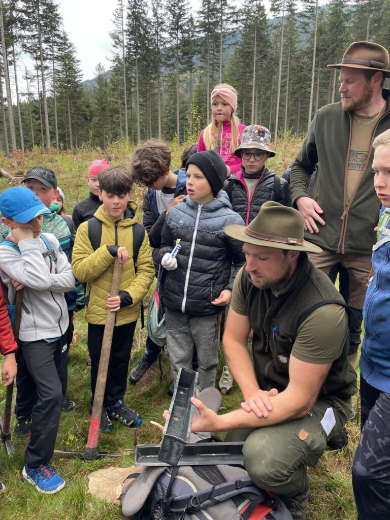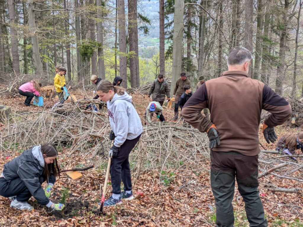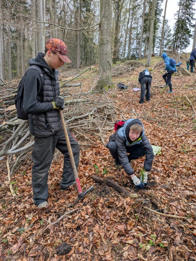 Děti z 1. stupně byly rozděleny do třech skupin. Ke dvěma skupinám se přidali šikovní mladí lesníci, kteří si pro žáky připravili velmi zajímavý, zábavný a hlavně poučný program. Společně vyrazili na vycházku do lesa, děti se dozvěděly spoustu informací o celém lesním ekosystému a dokonce vysadily i 4 malé sazeničky.