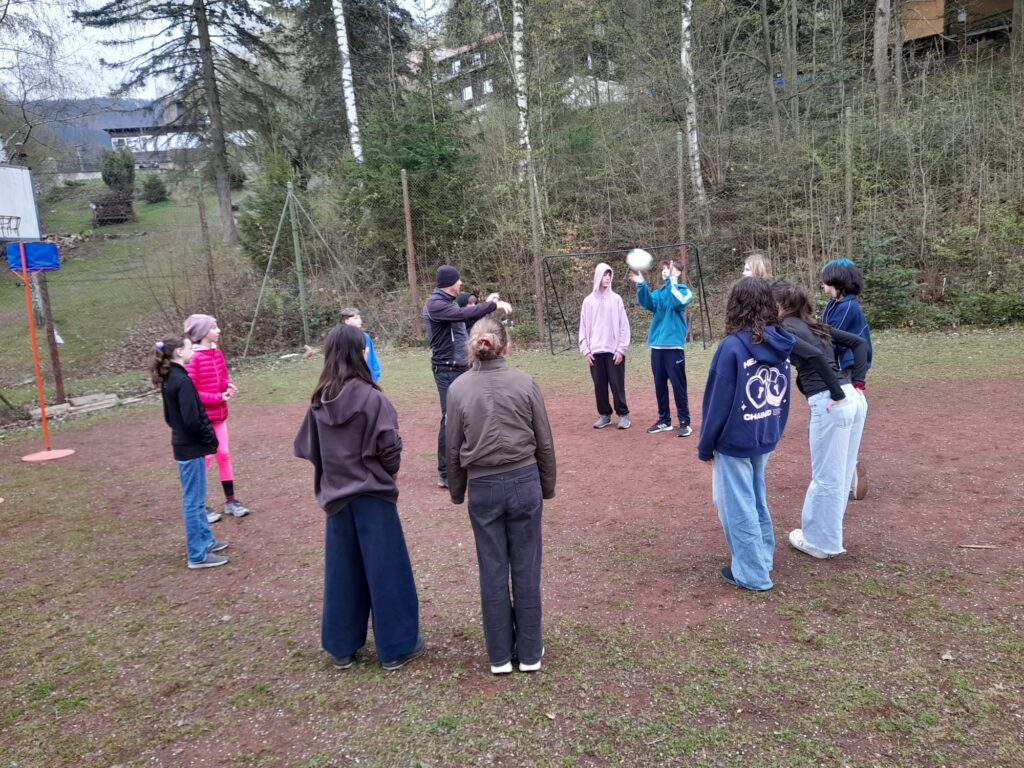 Do Hnízda vyrazili šesťáci, kteří spolu s místními dětmi procházeli stanoviště, která byla tematicky zaměřená na cirkulační ekonomiku. Nechyběla práce v dílně ani stanoviště sportovní, kde se hrál korfbal.